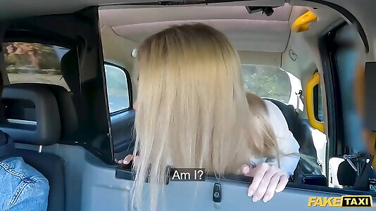 Public sex in a fake taxi with a busty British slut Miss Sally.