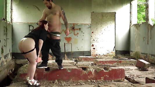 Bull cums in cuckold&039;s wife in a abandon bilding