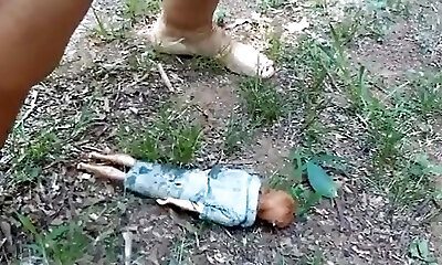 Fat bitch goes down on doll