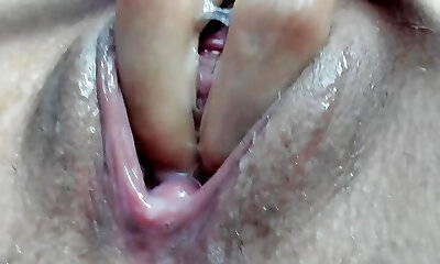 Eating and humping a meaty crevasse of a young mom after pissing. Close-up