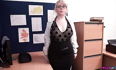 Immense tits woman in glasses rides his dick at work