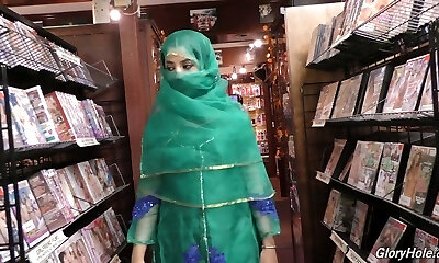 Super Hot Pakistani chick Nadia Ali sucks big dick in the glory hole bedroom