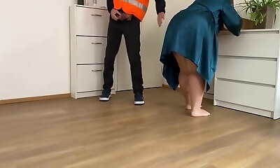 mojej żony nie ma w domu, więc pieprzę mojego pracownika serwisu i amp;#039; s duży tyłek